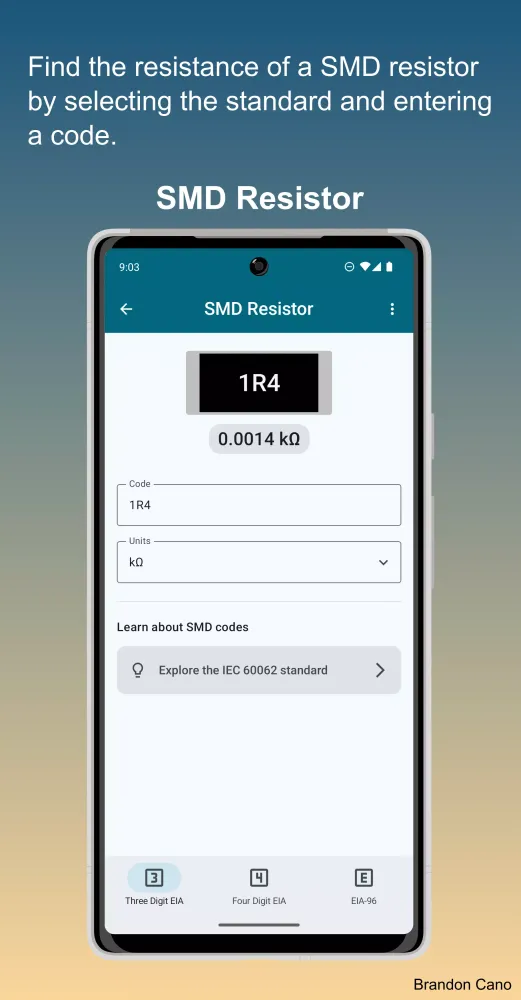 - Built-in Information Pages: Access in-app guides on resistor color coding and SMD resistor codes. Perfect for quick reference or learning.