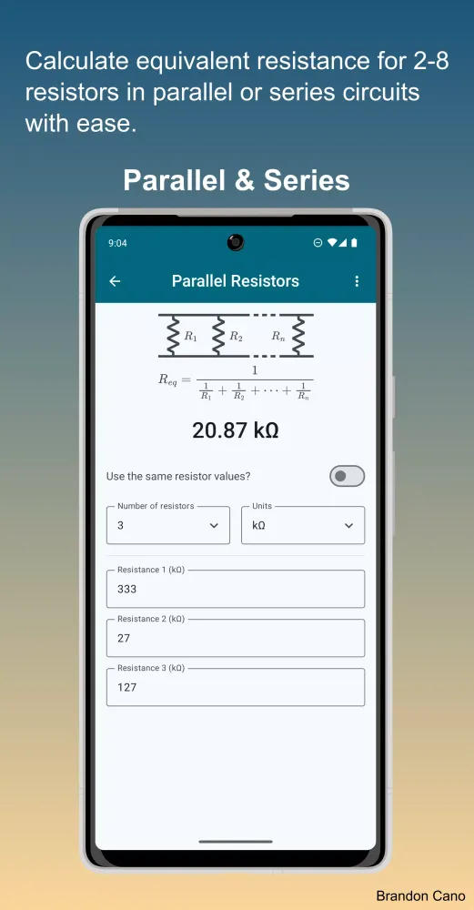- Parallel Resistor Calculator: Determine the equivalent resistance of multiple resistors in parallel.