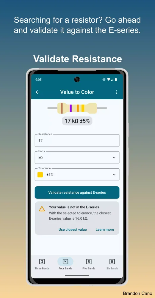 Instantly calculate resistor color codes and values for your electronics projects with ease! Our intuitive application is tailored for electronics hobbyists, students, and professionals who need quick and accurate resistor value calculations.