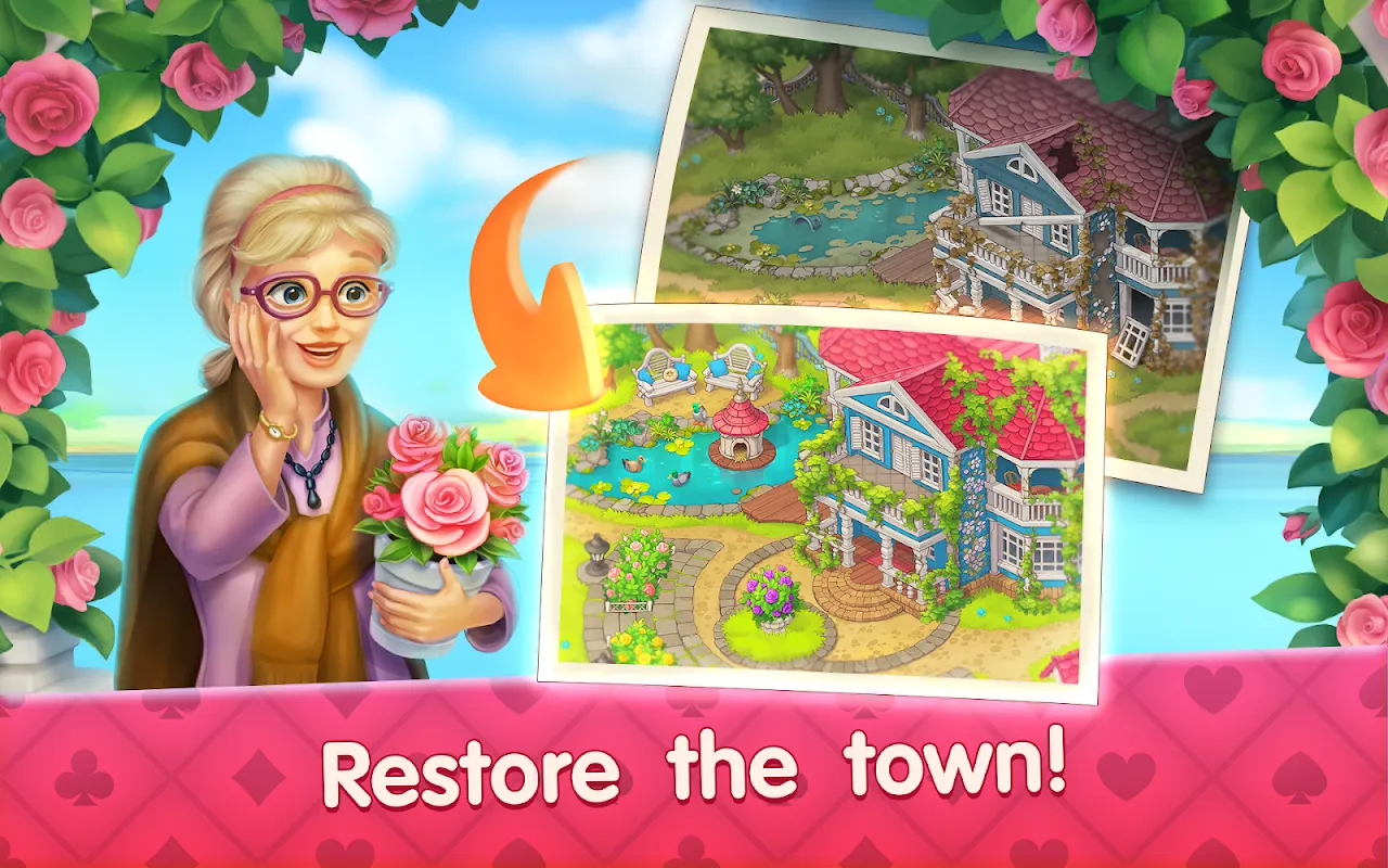 Follow the plot and discover a thousand secrets together with the characters. Decorate the square, take care of the renovation, and enjoy the beauty of a small city. A warmhearted story, a grand harvest of unique playing levels with interesting obstacles, nice and charming characters - all those things await you in a new exciting adventure which is CityMix Tri Peaks Free Card Games City
