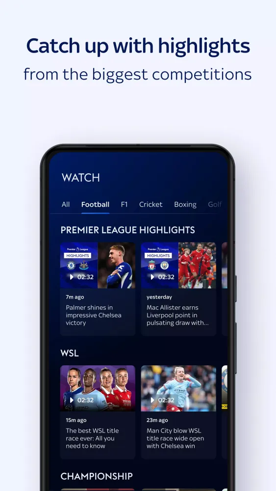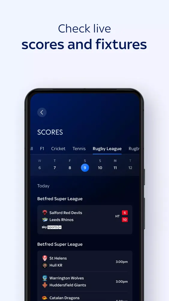 Get breaking news on the biggest stories, follow your favorite teams and sports, and stay updated with live scores. Whether it's football, Formula 1, cricket, boxing, golf, tennis, rugby league, rugby union, darts, NFL, racing, netball, or any other major competition, the Sky Sports app has got you covered.