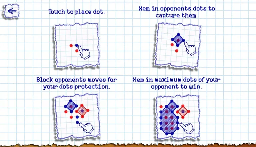 The objective of the game is simple yet challenging: encircle as many dots belonging to your opponent as possible. Players take turns placing dots on the intersections of a grid. Each player uses dots of their own color, ensuring they are separated by exactly one square in any direction—horizontally, vertically, or diagonally. The game concludes when all intersections are filled, or when a player concedes or agrees to end the match.