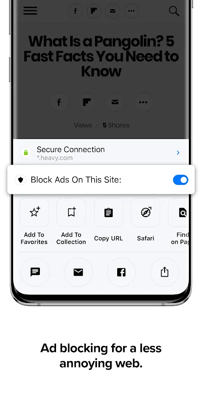 Block annoying ads and pop-ups, reduce data consumption, and speed up your experience with Cake’s best-in-class ad blocking technology. Cake automatically blocks annoying and disruptive ads like pop-ups, video ads, banner ads, and ads disguised as content. Occasionally, you may see some ads that aren’t disruptive. These ads help support great content creators. You can choose to block these ads, too, by turning off the Acceptable Ads feature in settings.