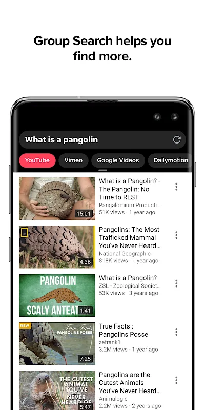 Enter your search and then swipe through results from multiple online search services. Get the best the web has to offer in videos, images and shopping.