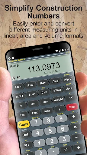 Enhance efficiency and minimize errors in your construction projects with the acclaimed Construction Master 5, a distinguished feet-inch-fraction builder's calculator app.