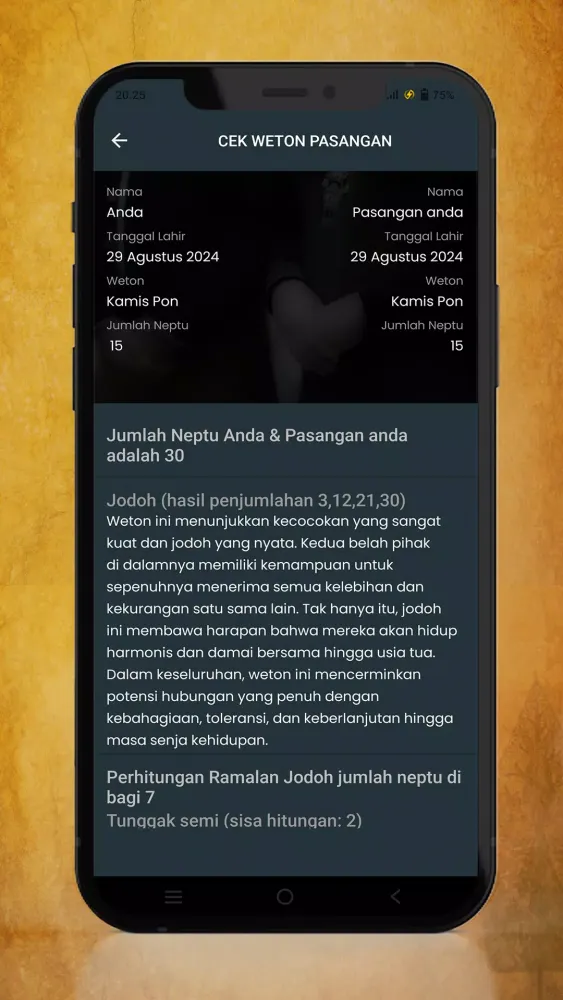 By utilizing this application, you not only gain access to valuable personal insights but also get a glimpse into the intricate cultural tapestry of Javanese traditions. Whether you're curious about your own weton or interested in learning more about this fascinating aspect of Indonesian culture, this application is an invaluable resource.