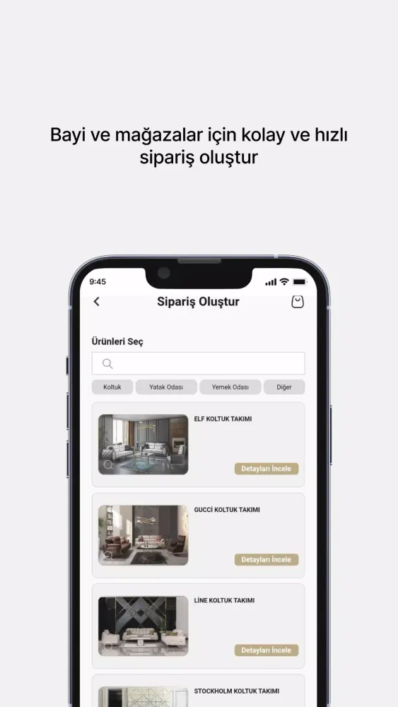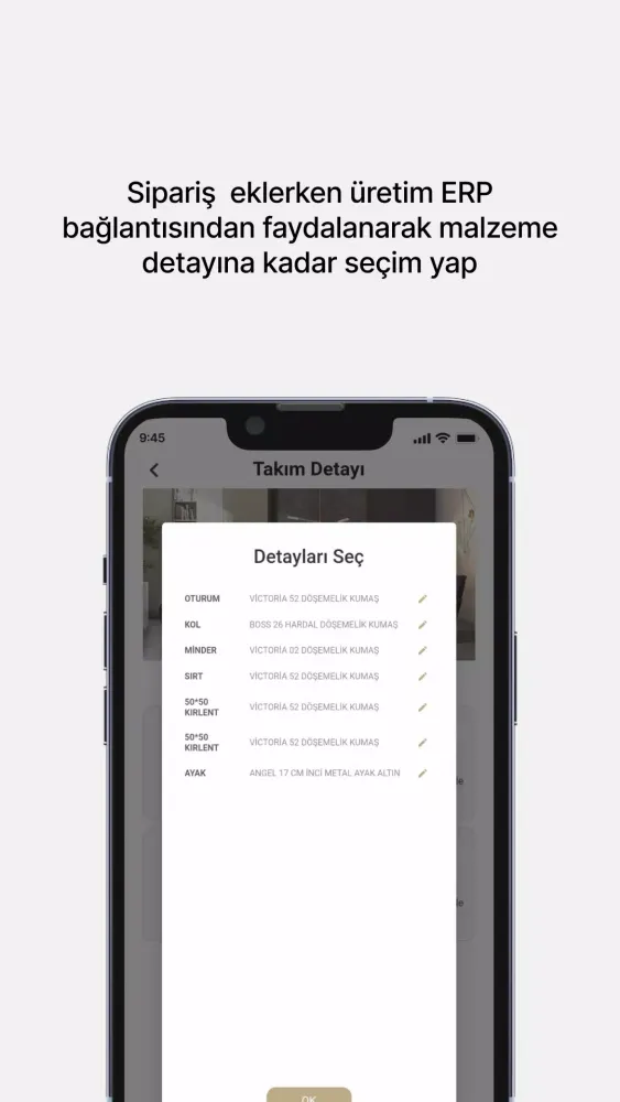 Dealers will find particular value in the app’s integration with the MÖBLESİS ERP system. As a dealer account holder, you can effortlessly place orders while accessing real-time updates on inventory levels and production statuses. The ability to suggest alternative materials and submit requests directly to the factory streamlines workflows and enhances efficiency. By leveraging this cutting-edge tool, dealers can focus on growing their businesses rather than getting bogged down by administrative tasks.