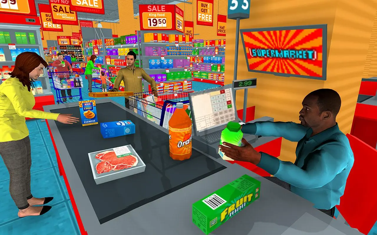 Players who love to play cash games and cash register games will get an amazing chance in cashier game to become cashier girl and cashier boy. Cashier girl will calculate grocery store items on cash register game in this crazy super market frenzy game. Multiple tasks are waiting for you in this supermarket shopping and grocery stores game. Put the grocery items in your cart, organize the shelves of different sections in shopping mall, and put all the items in their appropriate places. Supermarket and groceries manager will roam around to inspect the cleanliness of super mall. Be a part of this management and virtual family and perform multiple task like to put the waste like paper, plastic, bottles, shopping bags in the recycling bins. Get in the crazy family shopping mall and grocery superstore same as in real life to enjoy the best cashier game. Shopaholic people along with the professional cashier girl, super mom collect cash from the atm machine simulator and start grocery shopping at the grocery store in one of best online supermarkets games free store games.