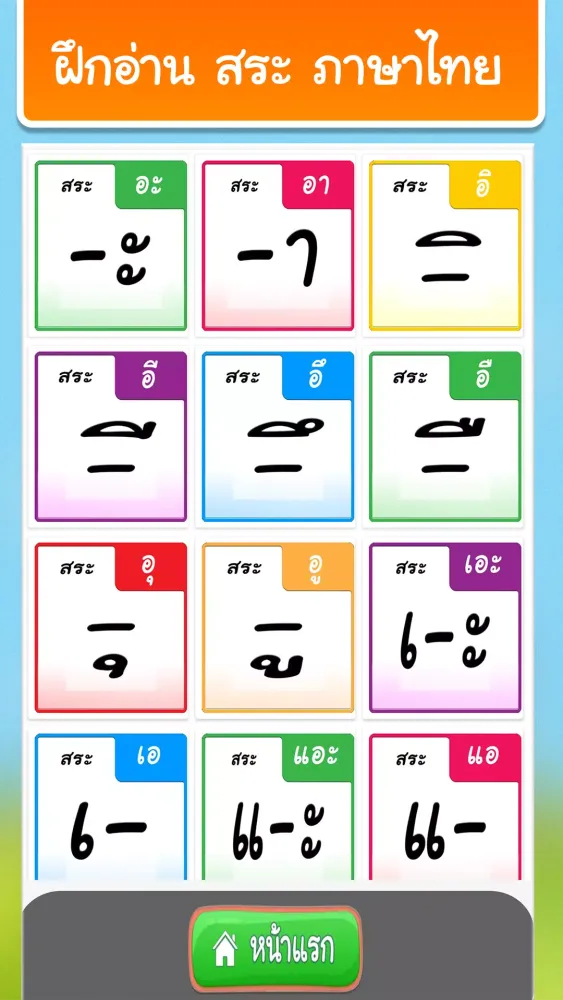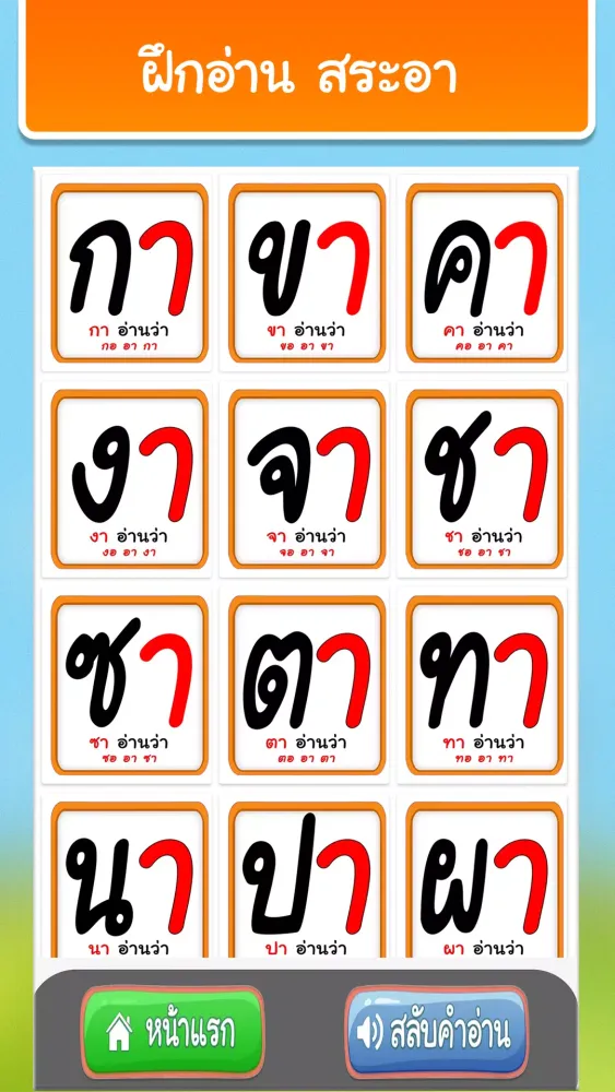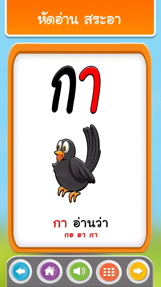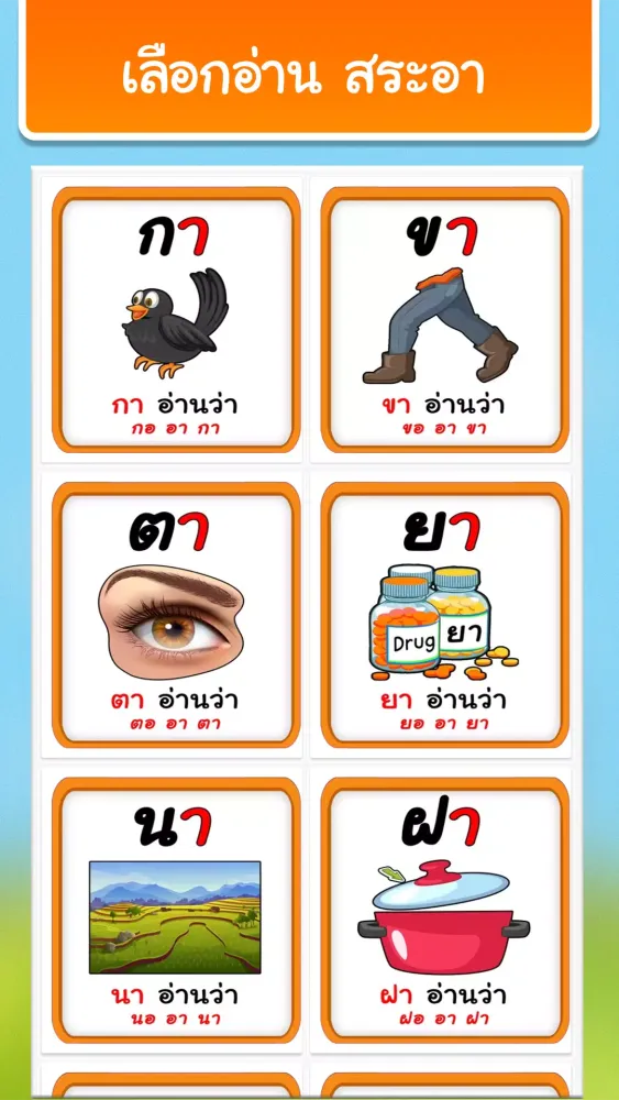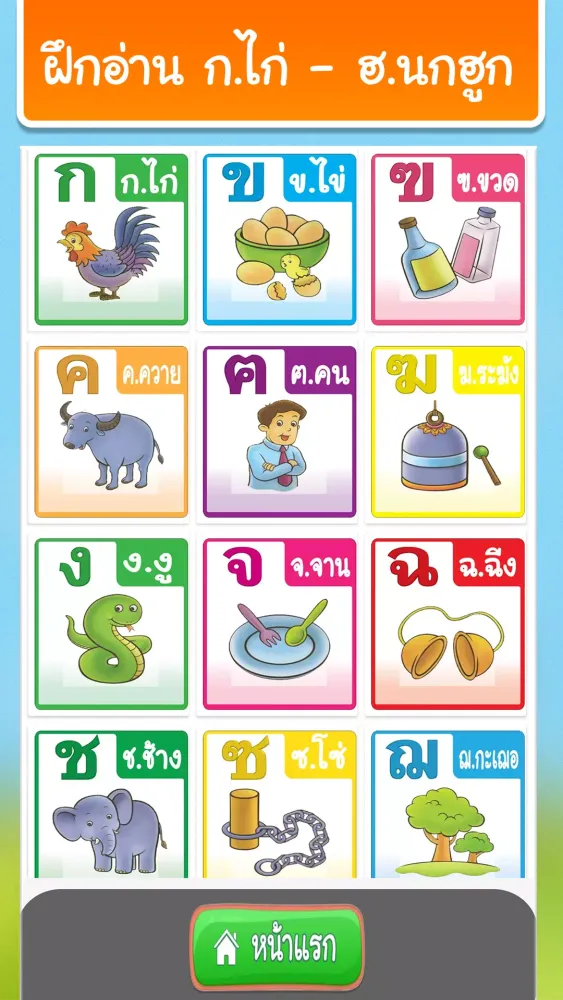 - Reading Practice: Children can practice reading Thai consonants and vowels from pictures accompanied by sounds.
