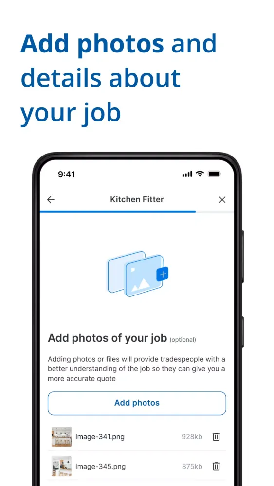 One of the standout features of the Checkatrade app is its user-friendly interface for sharing job details. You can effortlessly upload photos of your project, making it easier to convey complex or visually intricate tasks. This feature ensures that the tradespeople understand exactly what you need, saving time and reducing miscommunication.