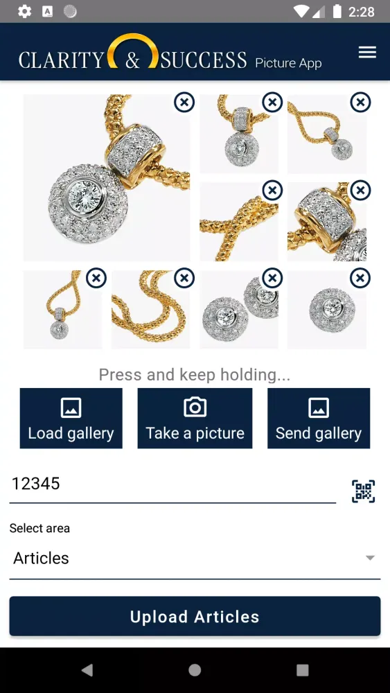 To integrate these images seamlessly into your business workflow, a web service needs to be configured. This service acts as a bridge, facilitating communication between the Clarity & Success software and your mobile device. Once connected, you can easily assign the captured images to the appropriate products by scanning a QR code displayed on your jeweler management software or by manually entering the product number using the app's on-screen keyboard. This streamlined process ensures that all images are stored directly in the designated image path within the software, keeping your inventory organized and accessible.