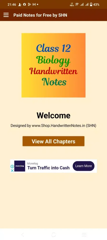 The "Class 12 Biology Hand Notes" application is an invaluable resource for students preparing for their Class 12 Biology examinations. This application offers meticulously crafted, handwritten notes that cover every single chapter in the Class 12 Biology curriculum. These notes are designed to enhance your understanding and retention of key biological concepts, making your study sessions more effective and engaging.