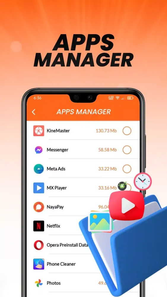 The app manager feature scans and identifies caches, residual files, and junk files within installed applications. You can easily delete these unwanted items, ensuring your device remains clutter-free and efficient.