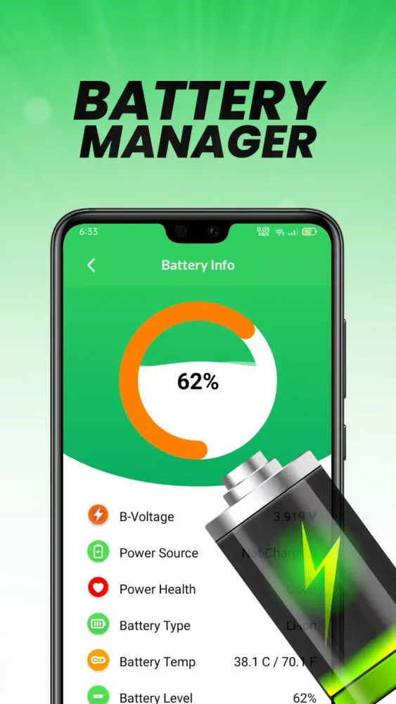 Our app also includes battery information features, allowing you to monitor your battery’s health, total capacity, current capacity, and battery type. This helps you maintain optimal battery performance and longevity.