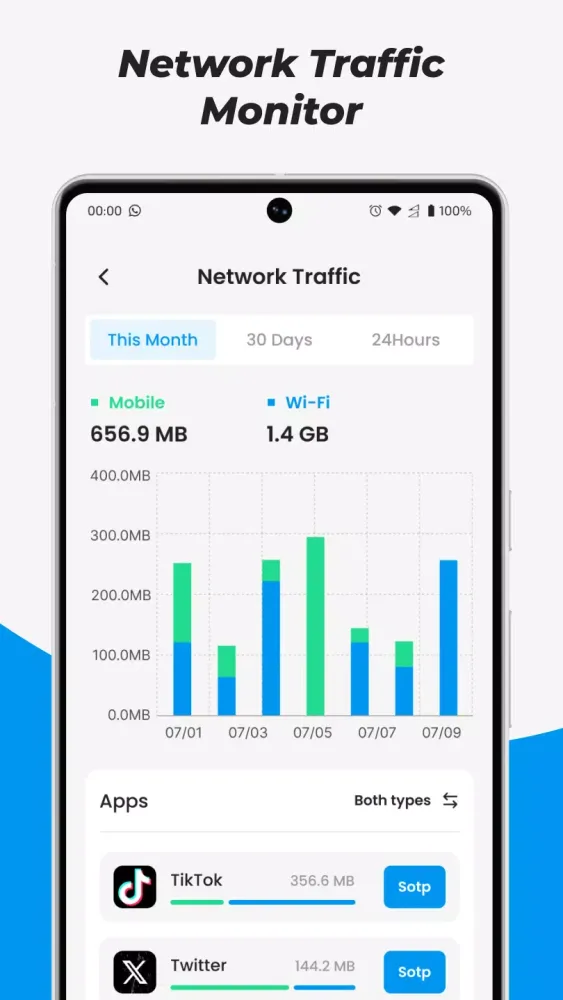 Stay informed about your network traffic and data usage. The built-in network traffic monitor allows you to keep track of how much data you're using and helps you stay within your plan limits.