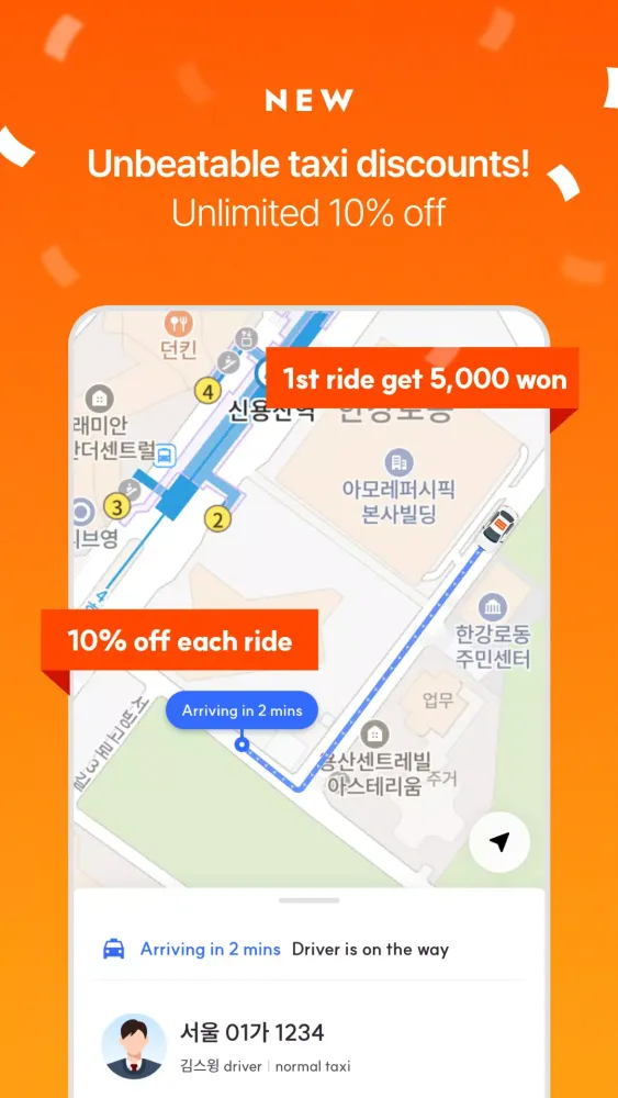 One of the standout features of SWING is the generous discounts available. By calling a taxi through the app, you can enjoy a 10% discount every time. Additionally, new users will receive a welcome bonus of 5,000 won on their first ride. You can choose from various taxi options including Standard, Deluxe, Premium Van, and Super Premium Van.