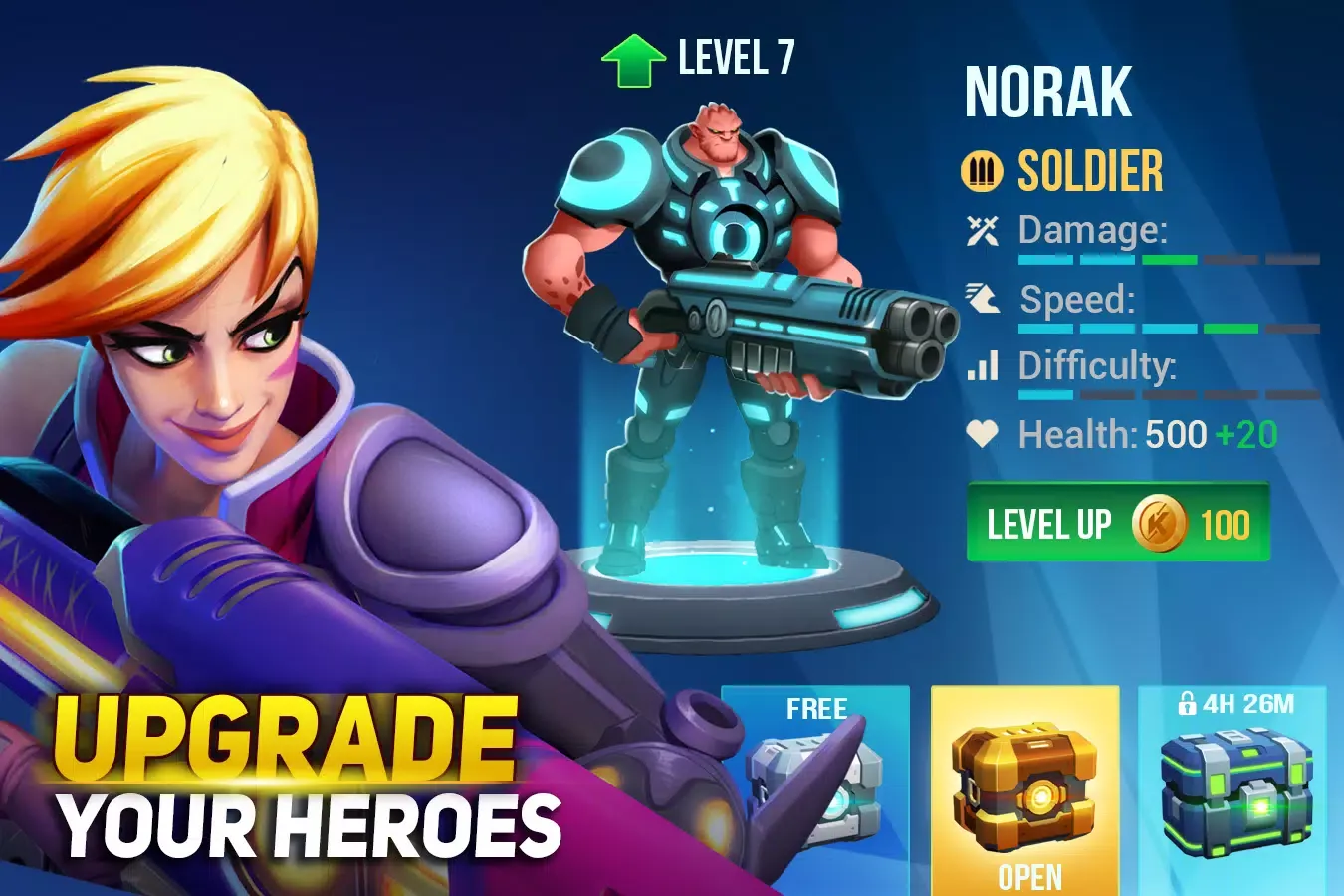 - Customization: Personalize your hero with a wide array of futuristic gear, enhancing both aesthetics and combat effectiveness.