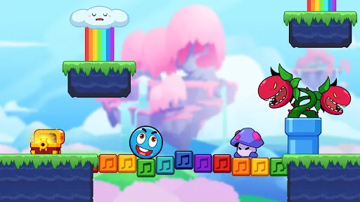 Ball's Adventures in Wonderland, where childhood's dreams are intertwined and touching any objects can completely change the way they look and play. The motionless grounds can start moving and playing beautiful music, a blue cloud can abruptly turn gray and start raining heavily ⛈⛈⛈, ball have fun with rainbow slides and can stretch into an extremely tall version of himself, or transform into something completely different.