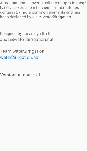A program that converts units from ppm to meq/l and vice versa to into chemical laboratories contains 27 more common elements and has been designed by a site water2irrigation