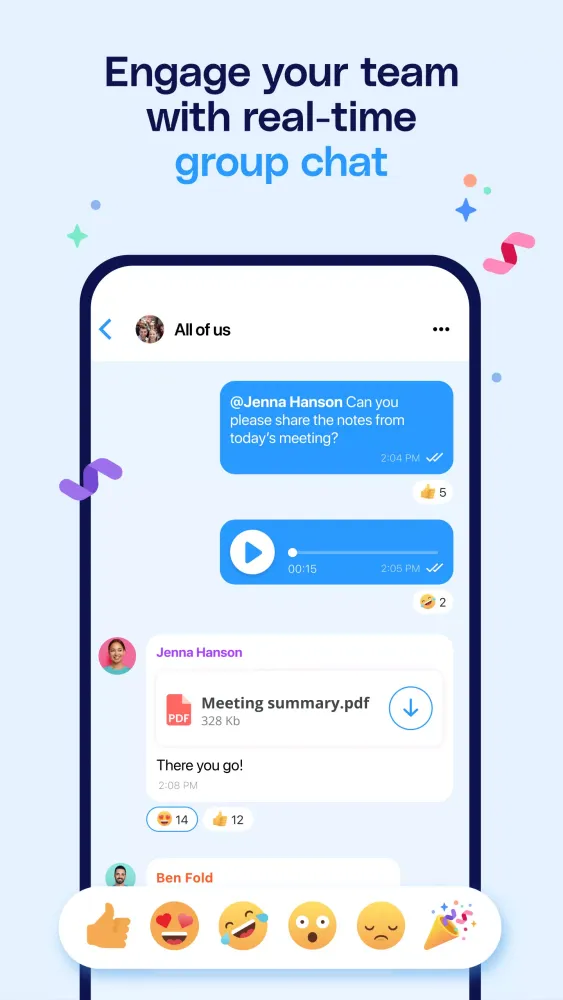 - Jennifer A. (Administration Manager, 35 employees): "It is easy to communicate and use! Everyone on the app loves it!"