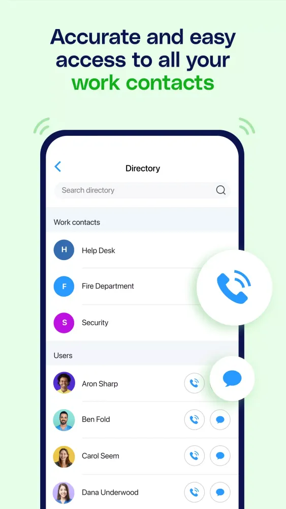 - Directory for all work contacts.