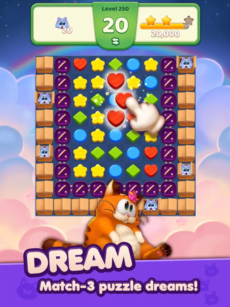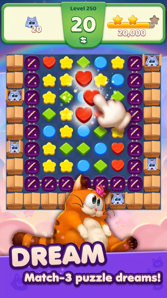"My Lazy Cat Dream Match" is the perfect blend of relaxation and excitement, offering a cozy and cute escape into the whimsical world of a lazy cat. Immerse yourself in the adorable and soothing atmosphere while indulging in exhilarating explosions and casual puzzle fun. Discover a universe of puzzles that will spark your imagination and bring endless joy!