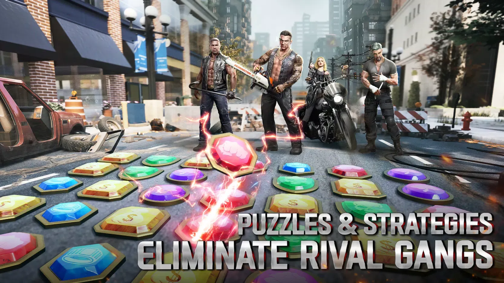 In Crimson Crime, diversity is key. Recruit a variety of talented experts and train soldiers who will fight to the death for you. Your gang can consist of Bikers, Ruffians, Shooters, and even Vehicles. As the leader, it's your responsibility to reclaim territories and re-establish order in the underworld.