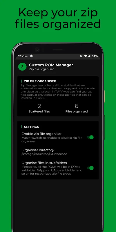 Custom ROM Manager was designed to make the process of installing custom ROMs, GApps and other zip files easier, and let users have more control in the process. It will: