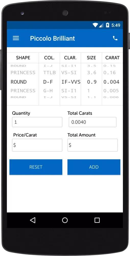 The intuitive design and user-friendly interface ensure that navigating through the app is a breeze. Each diamond listed in the app comes with detailed information including its carat weight, millimeter dimensions, and price per carat. This transparency allows you to make informed decisions about your purchases.