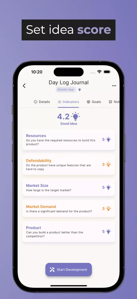 Evaluate Ideas: Harness the power of our sophisticated scoring system to meticulously evaluate your ideas. Assign key indicators such as monetization potential, virality quotient, market demand, and more. This ensures you focus solely on the most lucrative and impactful ventures.