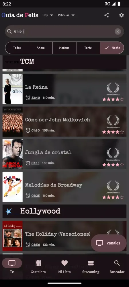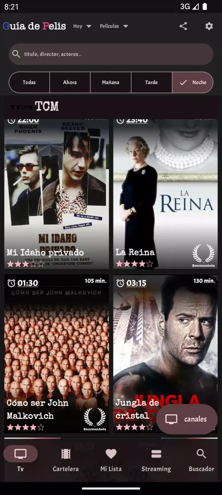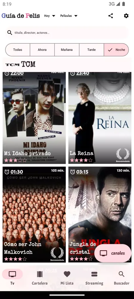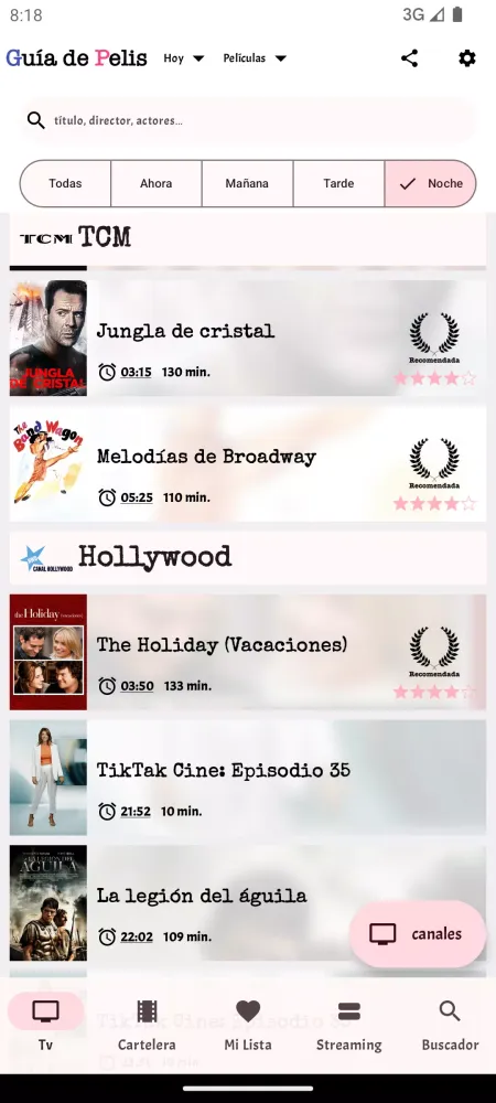 - Comprehensive TV Guide: Stay informed about the movie programming available today on both public DTT channels and private pay channels. You can view the schedule for different time slots: now, morning, afternoon, and night.