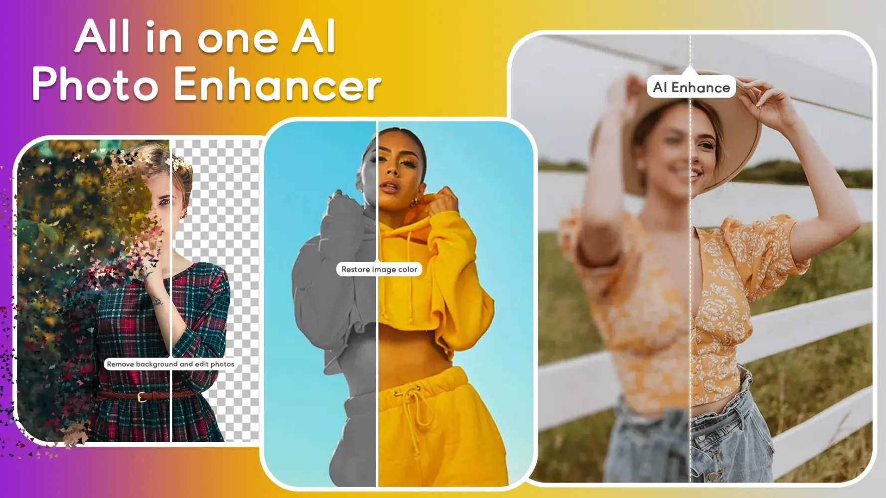 - Trending Backgrounds: Set your enhanced images as wallpapers or change backgrounds using the background removal feature.