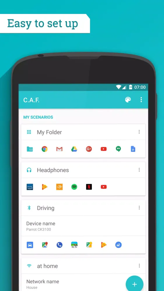 C.A.F. is an innovative application designed to streamline your mobile experience by providing you with contextual access to your apps and shortcuts precisely when you need them. This smart solution allows you to create personalized app folders on your home screen that adapt to your activities and surroundings, ensuring that the right tools are always within reach.