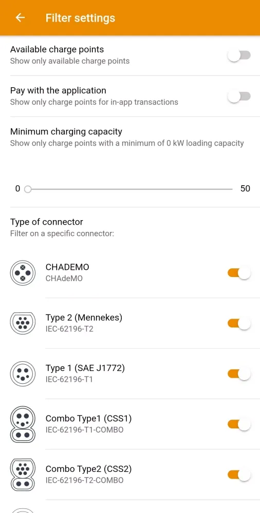 Finding charging stations near you is effortless. Simply open the app and use the built-in search function to locate all available charging stations in real-time. To refine your search, you can apply various filters such as charging capacity and connector types. These features allow you to quickly identify the best options for your specific needs.