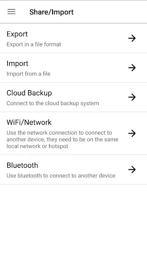 Backup and restore functionality built in (to Internal storage); auto backup frequency or no auto backups, change where backups go