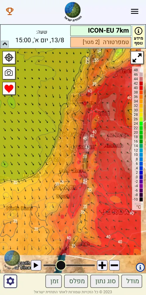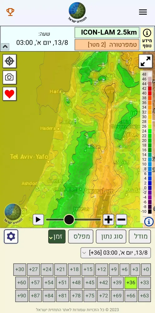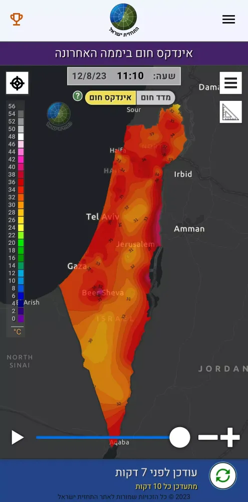 This weather application, named "התחזית ישראל" (The Weather Forecast Israel), is specifically tailored to provide comprehensive meteorological data and information for both Israel and the broader Middle East region. Updated online every few minutes, this app ensures that users have access to the most current weather conditions.