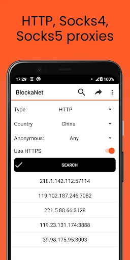 BlockaNet: Proxy List is an app that allows you to visit sites blocked by the provider and protect your IP address when using smartphones on the Android platform. It is distributed free of charge and does not require special knowledge to use. Users can get access to anonymous proxies any time they need to secure their Internet connection or increase the security of their connection.