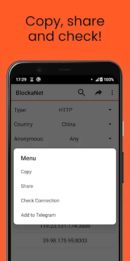 BlockaNet: Proxy list browser Screenshots