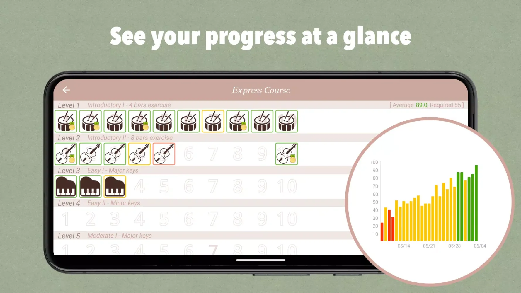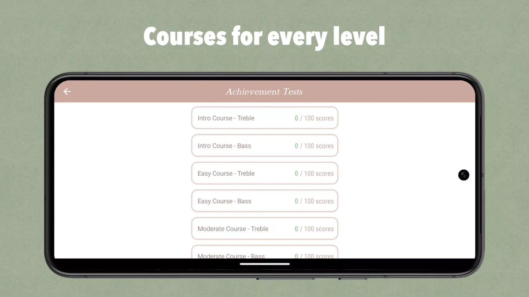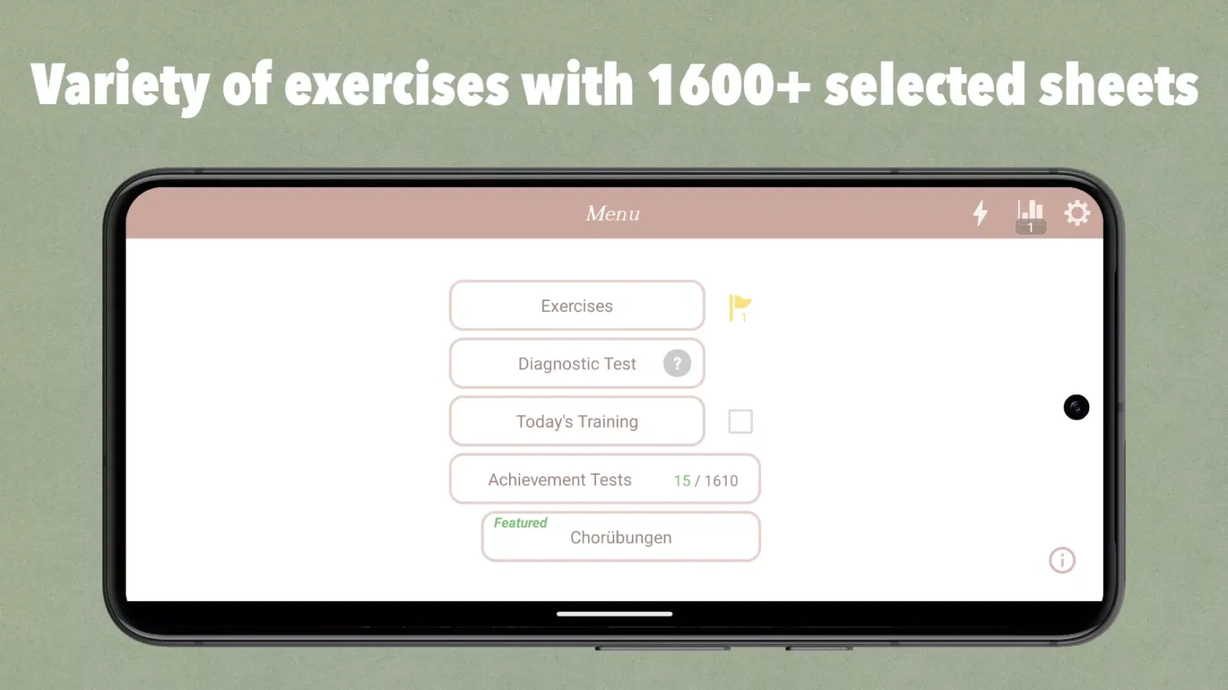 - Achievement Tests: Challenge yourself with over 1600+ highly selected musical sheets.