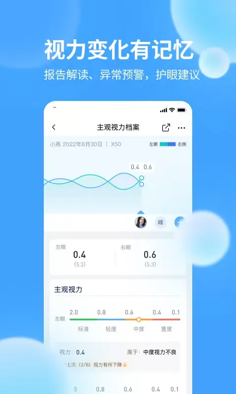 One of the standout features of Di佳极视 is its multi-user support. The app enables the addition of multiple family members or users, facilitating the scheduling and tracking of regular vision checks. This not only streamlines the management of individual records but also promotes a culture of proactive eye health awareness within the household. Moreover, the app sends timely reminders for upcoming vision assessments, ensuring that everyone remains on schedule with their check-ups.