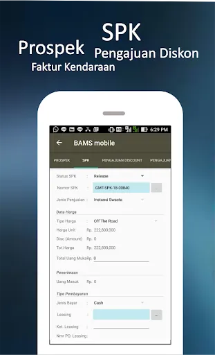 BAMS Mobile Sales Application adalah aplikasi sales untuk memasukkan data pelanggan, pesanan pelanggan, permintaan harga dan lain-lain. Aplikasi BAMS digunakan oleh sales diseluruh kantor cabang PT. Bosowa Berlian Motor untuk memasarkan kendaraan mitsubishi di wilayah indonesia timur.