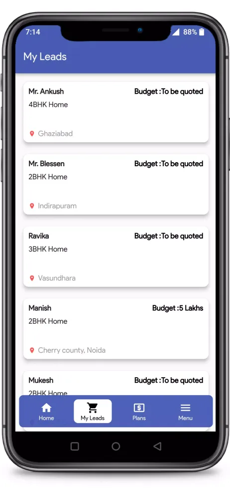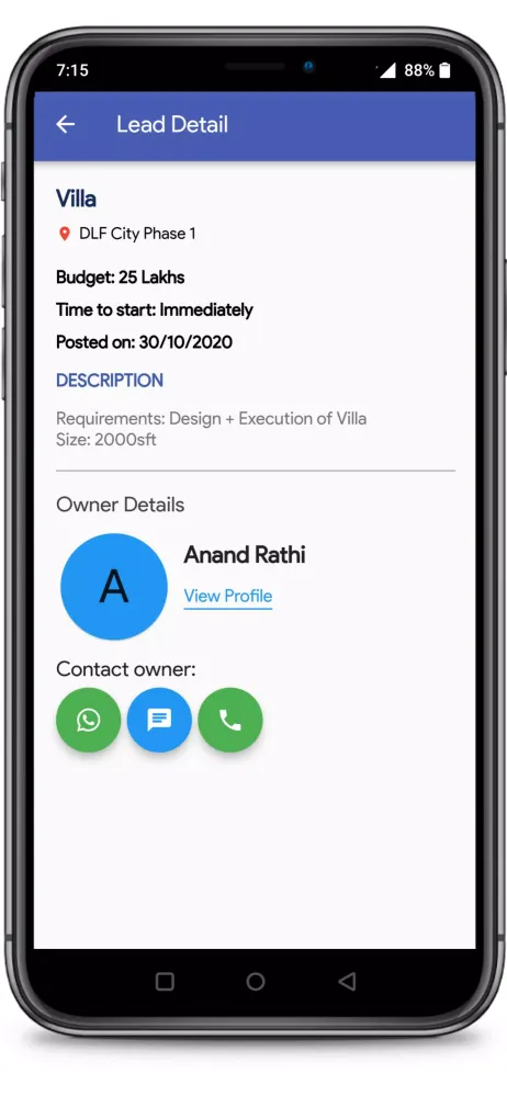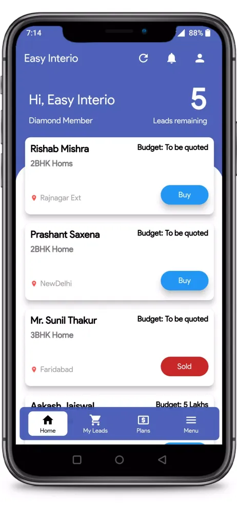 The process of connecting with these clients is simple yet effective. Step 1 begins when customers submit their requirements on the app, specifying exactly what they need from an interior designer. These requests are then forwarded to Interior Designers through verified leads. In Step 2, Easy Interio verifies each lead by contacting the customer to confirm their details, including specific project requirements and preferred timelines. Once verified, Step 3 allows Interior Designers to purchase the exclusive lead through the app. Importantly, each lead is sold only once, ensuring exclusivity and preventing competition among multiple designers for the same opportunity.