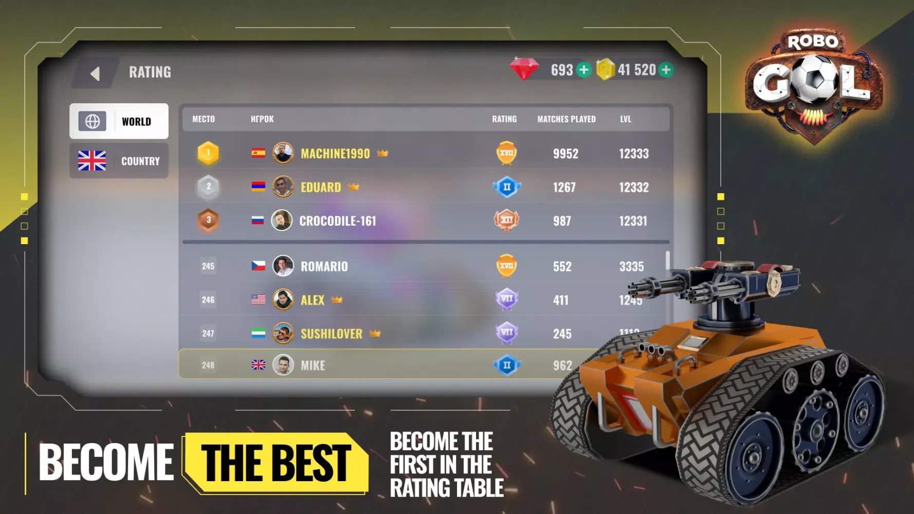 Each match is a test of tactics and teamwork, featuring three robots per team. Engage more, climb the global and national rankings, and gather invaluable experience. As you progress, the rocket car football league offers various upgrades, from weapons to ammo, ensuring every match is a new challenge.