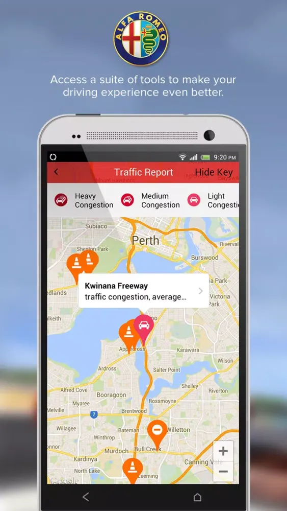 In addition to these benefits, the Alfa Romeo Owner app offers unique map-based tools designed to enhance your driving experience. Utilize the Traffic Conditions feature to navigate through busy roads effortlessly, find the best Fuel Stations nearby using the Fuel Finder, and locate convenient Parking options with the Parking Finder. These tools are designed to provide real-time data to help you plan your journeys more efficiently and enjoy your time on the road even more.