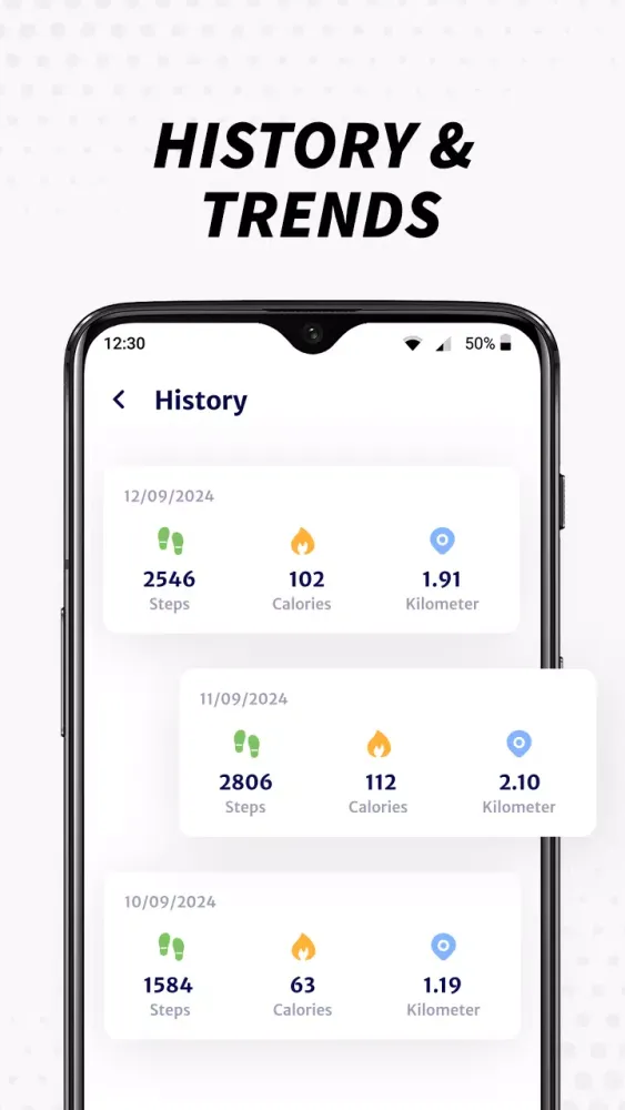- Motivational Insights: Gain motivation by setting personal step goals and analyzing your progress over weeks and months.