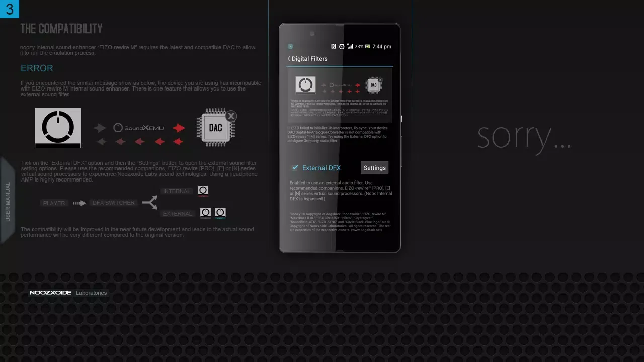 With the DFX Switcher, users can choose between internal or external audio filter networks, offering a dynamic range of sound modeling options. For those seeking a change in the aggressive sound profile, external VSP series can be utilized, providing versatility and adaptability to cater to individual preferences and listening environments.
