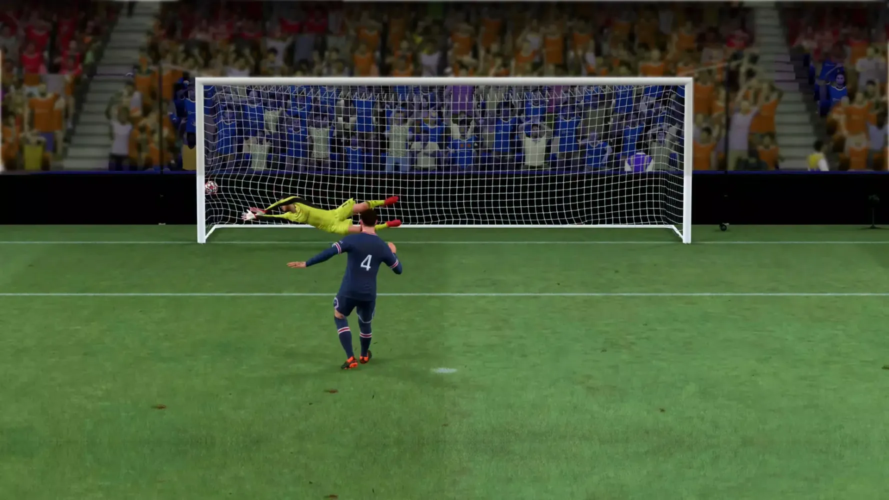 - Goal button for shooting.