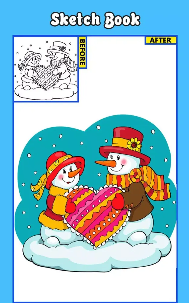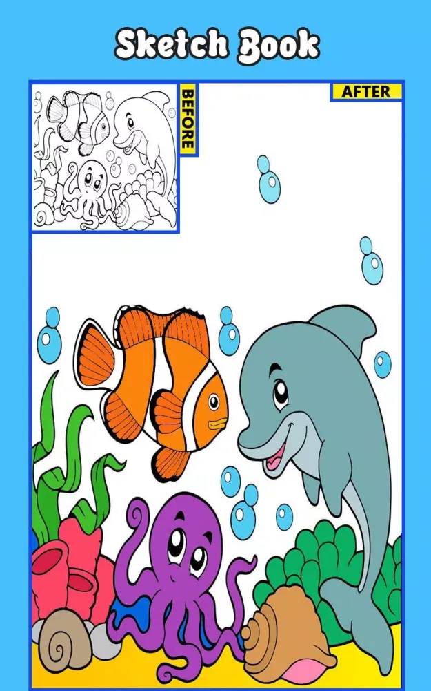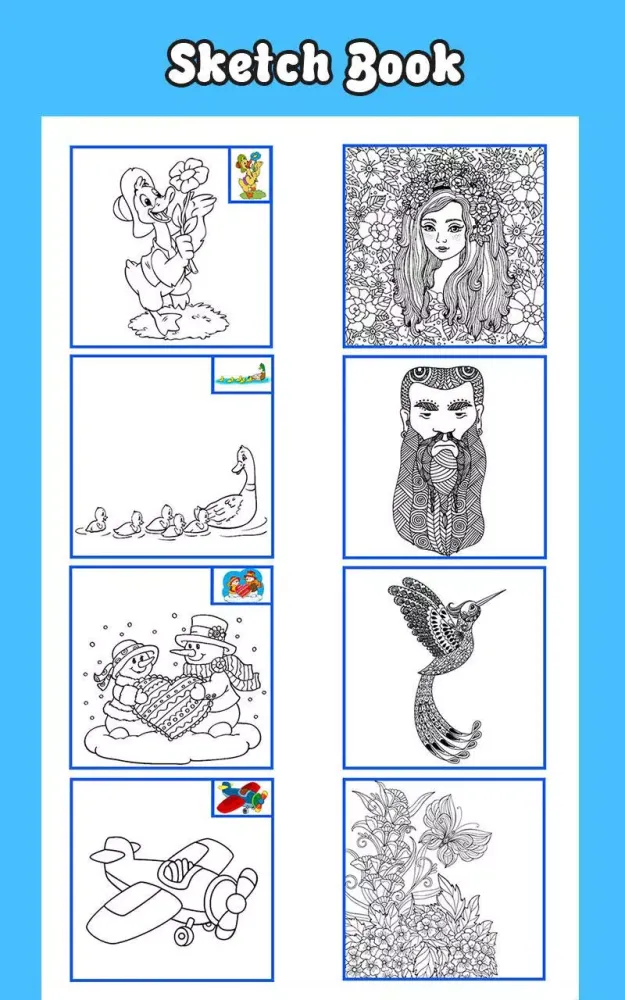 The application includes a curated collection of coloring pages suitable for both kids and adults. These pages come with sample color references, providing inspiration and guidance for those who might need it. Moreover, the app features a unique collection of fun sticker packs that can be added to drawings and paintings, adding an extra layer of creativity. These stickers can be used to embellish artwork, making each piece truly unique.