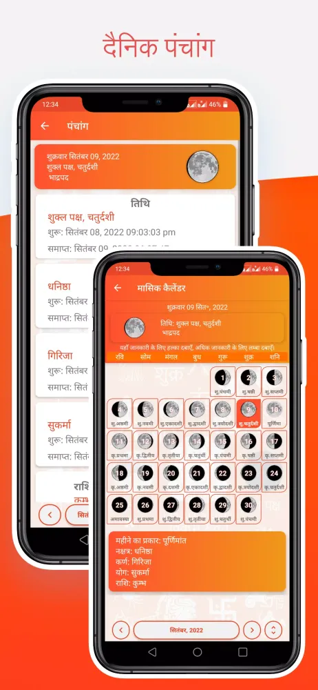 Panchang (पंचांग): Combines the five elements of Vedic astrology—Tithi, Nakshatra, Karana, Yoga, and Var. These elements change daily according to the movements of the moon and sun.