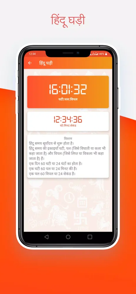 Unique Hindu Clock (हिन्दू घडी): Tracks time using the Vedic era’s Ishtakal (इष्टकाल), breaking each day into Ghati, Pala, and Vipala segments.
